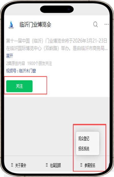 關注『臨沂門業(yè)博覽會』公眾號,點擊右下方『參展報名』